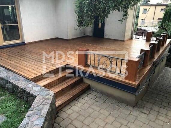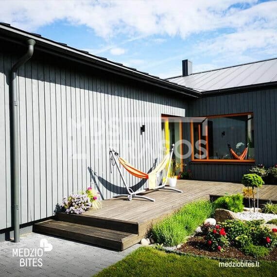 “Pine-impregnated terrace boards are pleasant to the touch of the feet, do not get hot in the summer, and match the exterior of the house beautifully. In addition, impregnated boards are protected from rotting, fungus and wood pests. The terrace can be forged from various types of wood, but be aware that the beauty, comfort, durability, and price will depend on the selected type of wood,” said M. Janėnas.