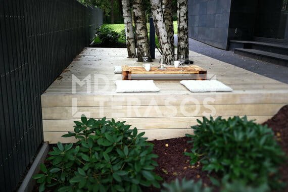 “Međios bitės” photo/The terrace is equipped with terrace boards supplied by “Međios bitės”.