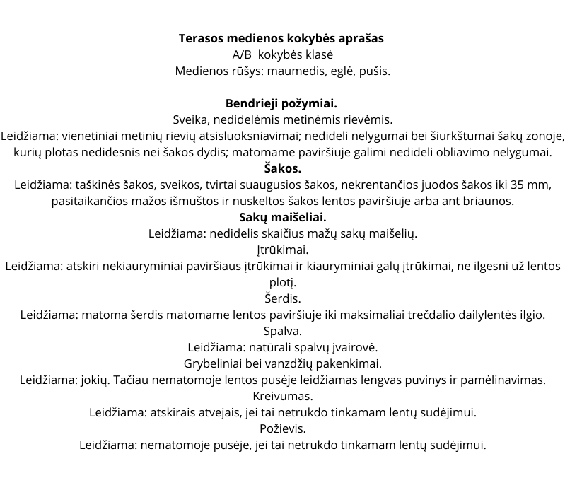 Larch decking boards belong to the AB quality class. This is a type of wood that meets high quality standards. Read more in the “Quality Description” section.